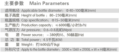 適用于不同規(guī)格玻璃瓶及塑料瓶的外蓋(含螺紋蓋)自動旋合,該機(jī)技術(shù)先進(jìn)、性能可靠、產(chǎn)能高。